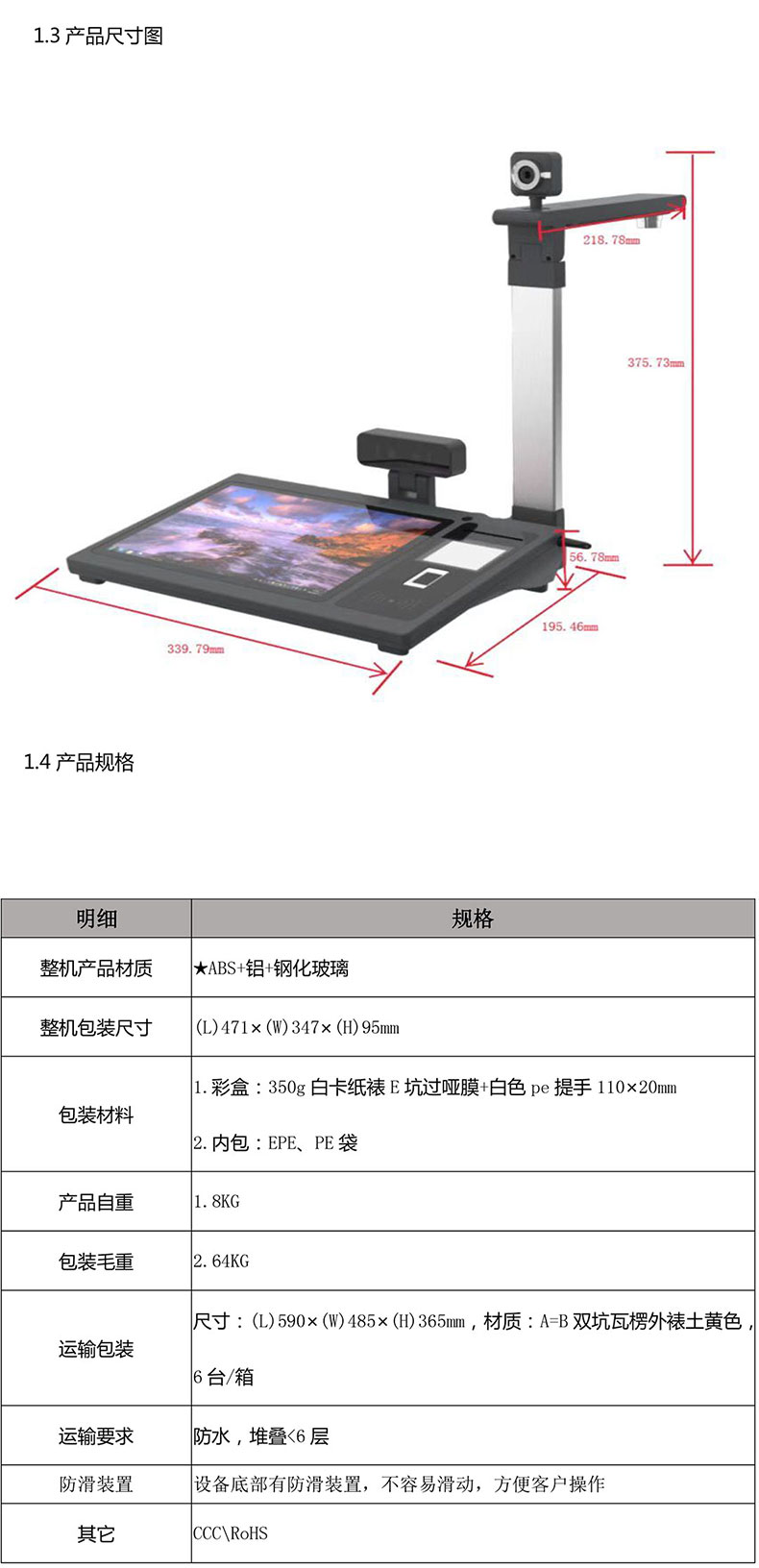 (*由于產品升級或其他原因,醫院婦產科人證核驗機產品實際參數有可能變更,以實際產品為準。本文中的所有陳述、信息和建議也不構成任何明示或暗示的擔保)