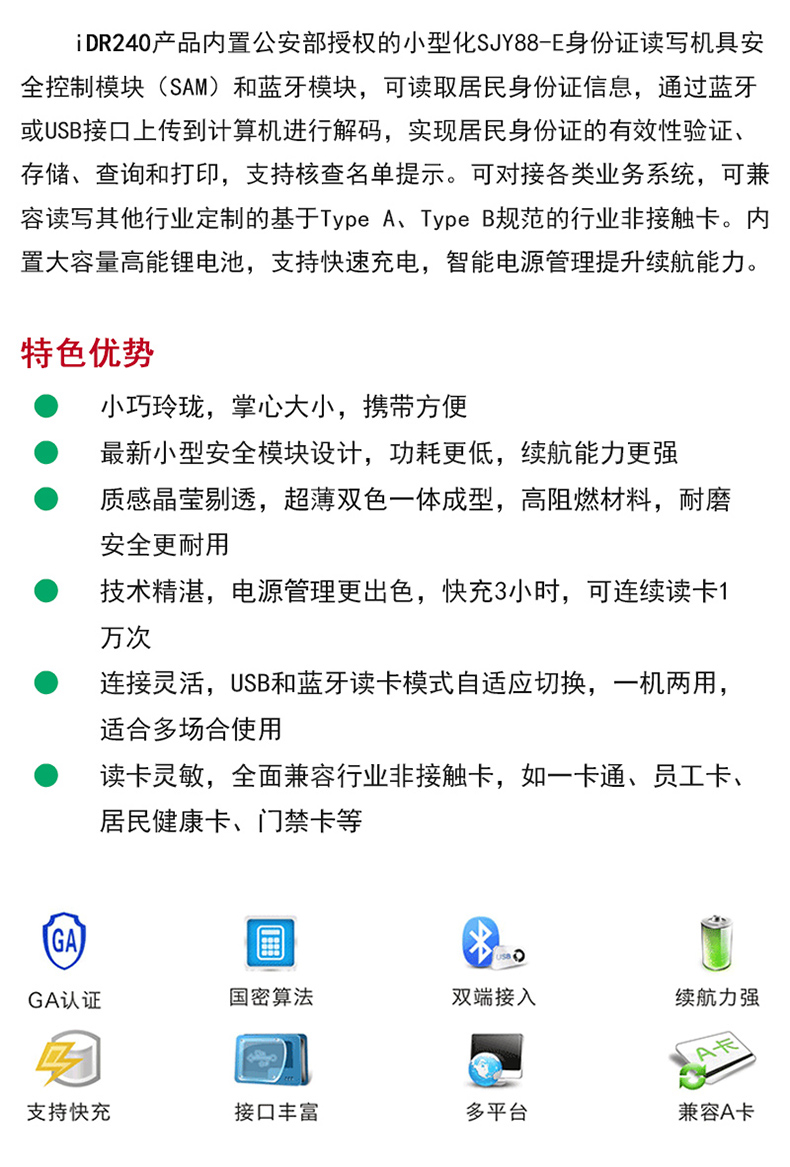 (*由于產品升級或其他原因,精倫idr242藍牙身份證閱讀器產品實際參數有可能變更,以實際產品為準。本文中的所有陳述、信息和建議也不構成任何明示或暗示的擔保)